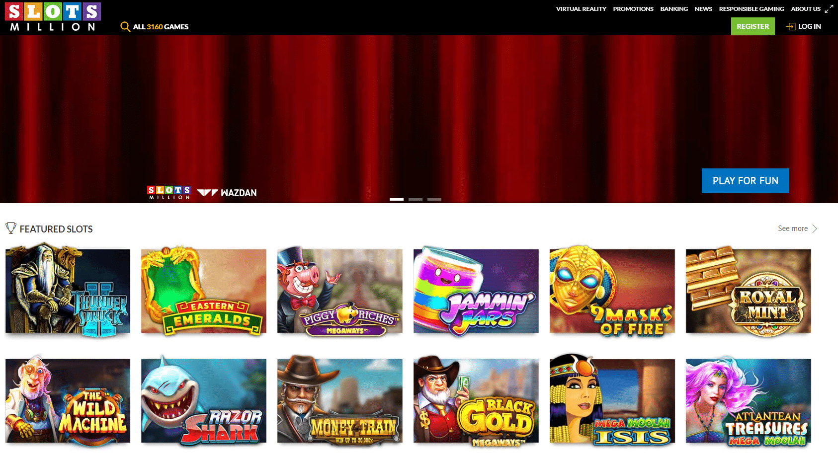 Beim Besuch auf der Website von Slotsmillion erkennt man sofort, worum es bei diesem Casino geht: um Slots. Ohne viel Tamtam werden hier die Automatenspiele nach verschiedenen Kategorien sortiert präsentiert. Du kannst zwischen Klassikern oder den neuesten Games auf dem Markt, sowie Megaways, Jackpot- und Casinospielen navigieren. Die Suchfunktion ermöglicht es dir außerdem, direkt nach deinem Lieblingsspiel zu suchen. Das Design der Website ist ansprechend und clean gestaltet und verfügt über eine ausgezeichnete Grafik. Der Login Bereich sowie die Promotions und Bonusangebote sind einfach zu finden und auch in den Virtual Reality Bereich gelangst du ganz einfach über die Hauptnavigation in der oberen Menüleiste.