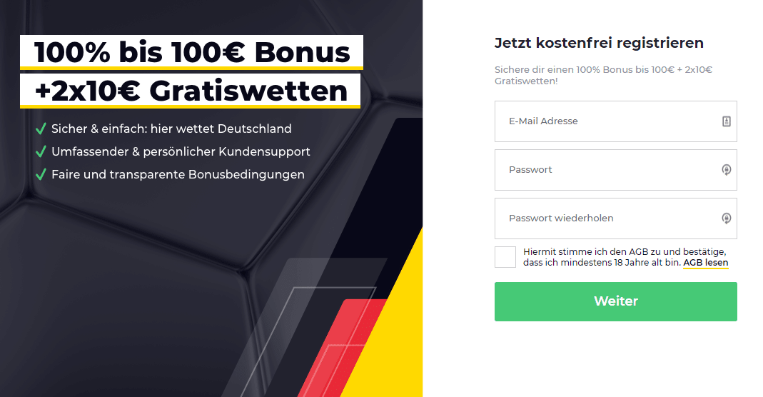 Es ist nicht schwer, sich auf Wetten.com zu registrieren. Um den Registrierungsvorgang erfolgreich zu vollziehen, befolgen Sie folgende Schritte: