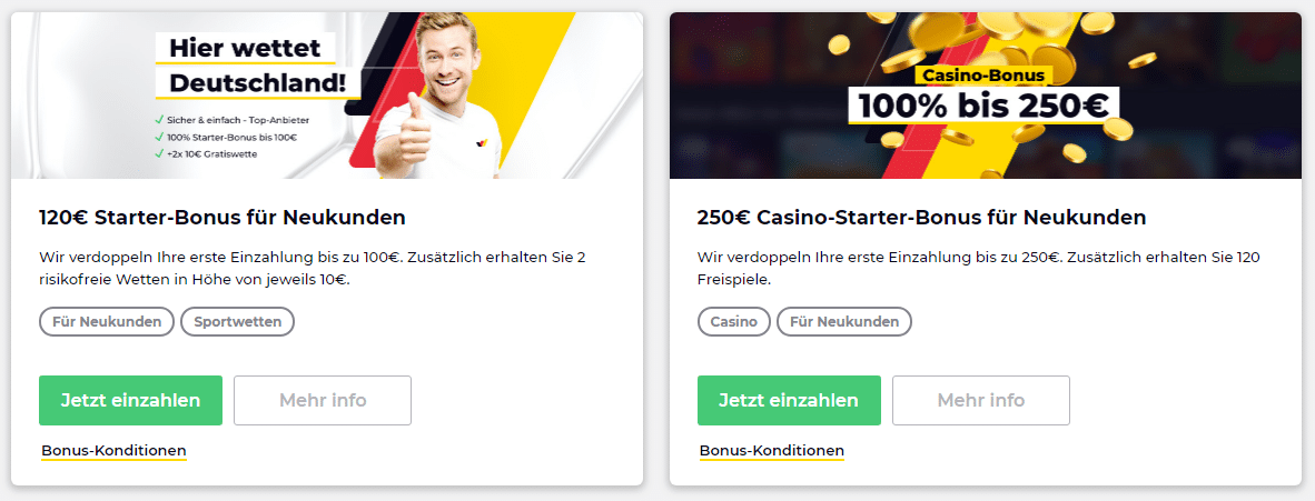 | Sportwetten-Bonus | 120€ | PROMO CODE ERHALTEN |